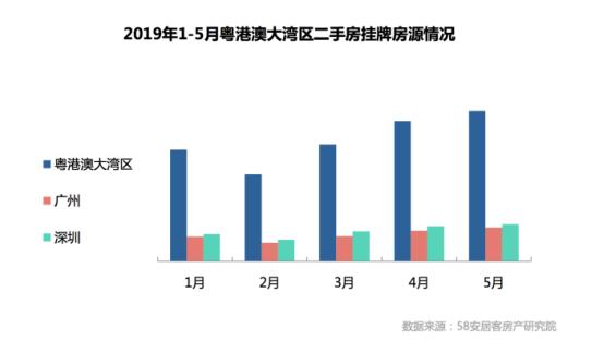 报告显示,从2019年1-5月的月度走势来看,粤港澳大湾区的二手房挂牌房源供应量2月份较低,3月份开始逐月上升。从城市分布来看,深圳、广州二手房挂牌房源量占据整个大湾区房源近一半;东莞、佛山的二手房挂牌量也有10%以上的占比。
