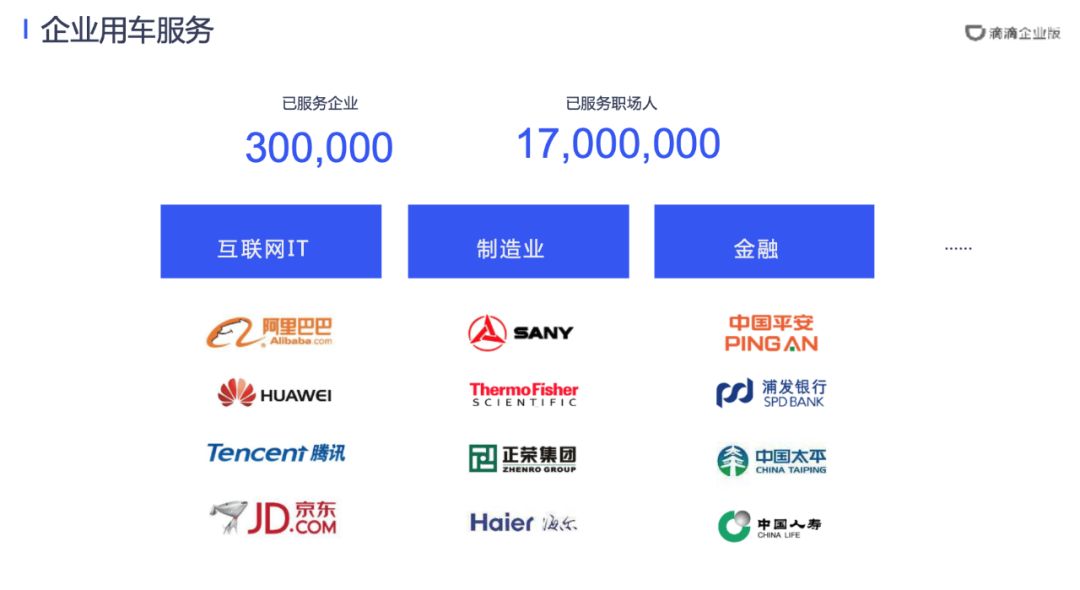 从目前看,滴滴企业版已经服务了30万家企业,服务用户超过了1700万人。