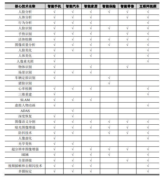 虹软科技核心技术的应用场景范围,来源:虹软科技招股书