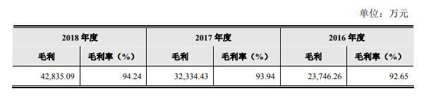 虹软科技属于软件和信息技术服务业的高新技术企业。2016年-2018年度,公司主营业务毛利率分别为92.65%、93.94%和94.24%。由于授权许可的算法软件包一般无需实体硬件的生产、包装及运输,因此主营业务成本较低,毛利率较高。