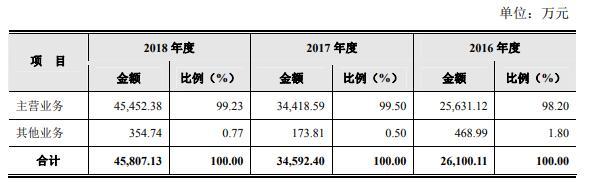 招股书显示,2016年-2018年度,虹软科技分别实现营业收入26,100.11万元、34,592.40万元和45,807.13万元。公司主营业务突出,主营业务收入占比分别为98.20%、99.50%和99.23%,主要为软件授权许可使用费收入。