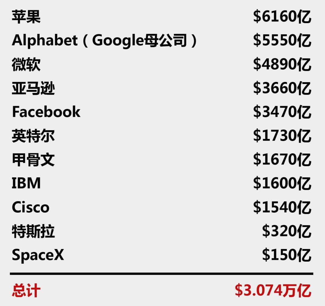 (首次科技巨头跟川普见面时的市值总额)