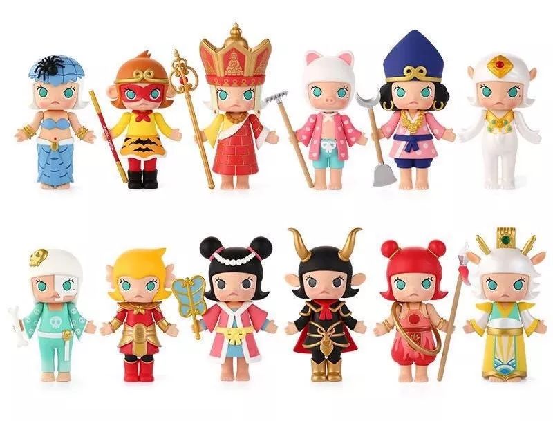 另一方面,原创也增加了作品的自由性,避免了还原原作的压力,可以通过修改细节赋予作品不同的含义,尤其空白的设定,有利于设计师进行二次创作,创造出不同的个性化形象。例如由香港设计师Kenny Wong设计的Molly娃娃,就已经推出了十二生肖系列、海洋系列、西游系列等不同设计元素的系列产品。