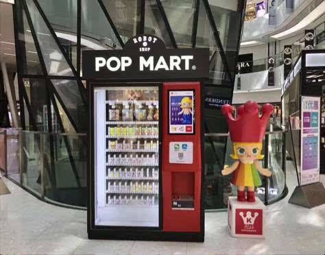 随着潮流玩具热度的增加,销售方式也变得更丰富多样。在线下,除了展会和线下门店,机器人商店——即无人售货机也发展起来。自2017年4月推出机器人商店以后,POP MART已经在线下铺设了近400台机器。这些具有更强灵活度的机器被放置在一些不适宜开设门店的地方,或是为门店选址积累前期销售测试数据。