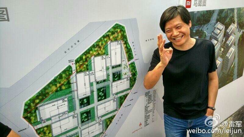 2015年,雷军站在小米科技园规划图边,图片来自雷军微博