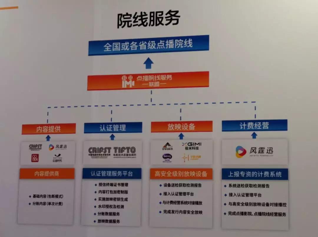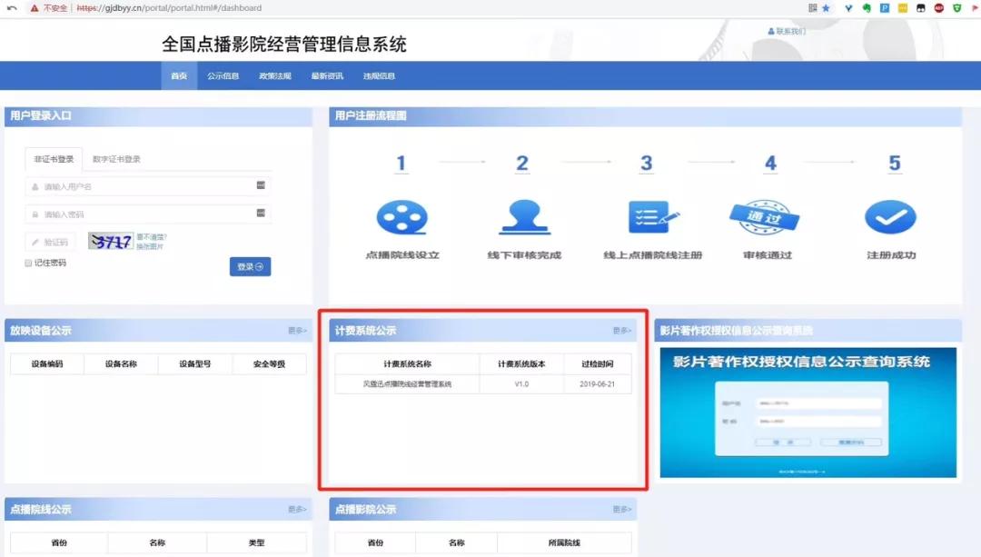 公示点播影院信息的“全国点播影院经营管理信息系统“中有:放映设备、计费系统、点播院线、点播影院和影片著作权授权信息五类审核项。我们从全国点播影院经营管理信息系统上看到,目前通过审核并公示了的,有计费系统项中的“风霆迅点播院线经营管理系统”。
