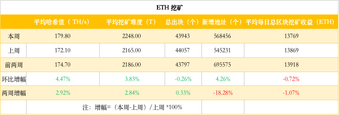 etherchain.org数据显示,目前平均挖矿难度 2248 T,环比上涨约 4%;平均算力 179 TH/s,环比上涨 4.5%。