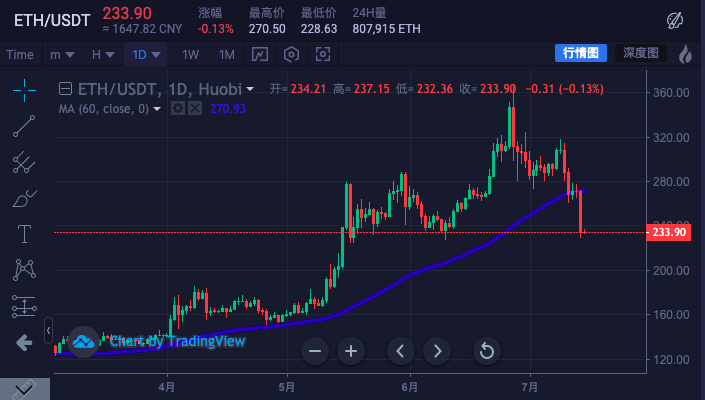 ETH周报 | 价格跌破60日均线,看跌至200美元;去中心化交易协议0x出现漏洞(7.8-7.14)