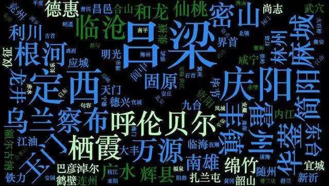数据来源:龙瀛的研究(字体大小代表流失人口的严重程度)