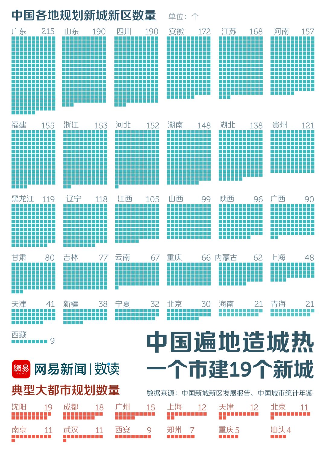 国务院的一项截止2016年的调查显示,12个参与调查的省会城市,平均每个规划了4.6个新城;144个参与调查的地级市,平均每个规划建设约1.5个新城。要达到这些新城的预期规划,总共需要住进去34亿人。