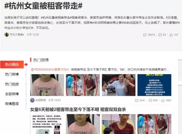比如在最近的热搜排名中,微博对“杭州女童”一案的舆情引导中,始终尝试着融入“邪教”这一概念。即使在警方辟谣排除邪教说法后,仍然坚持在热搜中宣传“三山国王”这一概念。对商业化的微博而言,用户的兴趣和讨论就是其生命线,这很危险。