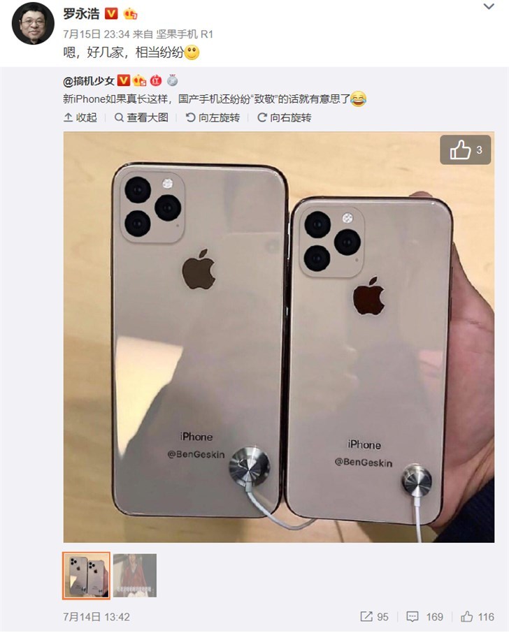 罗永浩暗示多家国产手机将“致敬”iPhone11设计