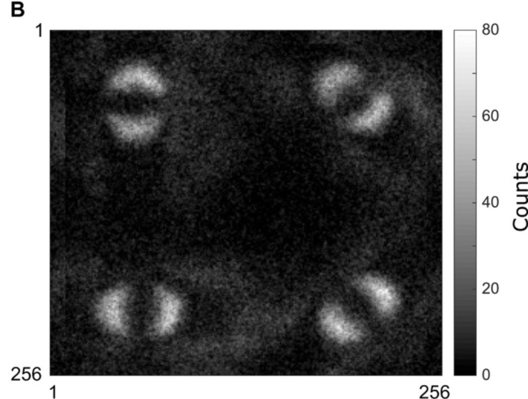 然而,可以利用相位圆的位置信息对每幅图像进行反扫描,然后再将所有图像相加。结果如图4B所示。