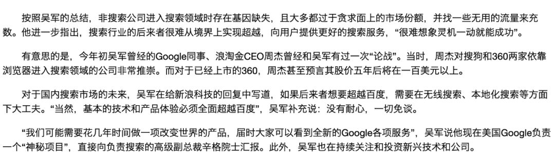谷歌出来的人,比较清高,更多是从技术而非场景出发,吴军等人对产品也不够重视。