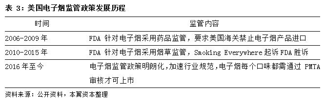 近年来美国 FDA 的监管力度呈现不断增强的趋势,2018 年9 月12 日,美国 FDA 宣布了历史上最大规模的一场管控电子烟行动,内容包括命令Juul(占据美国电子烟市场 72%的份额)、Vuse(10%)等五大电子烟制造商要在 60 天内提交一份计划,详细说明将采取何种措施避免青少年使用他们的产品。