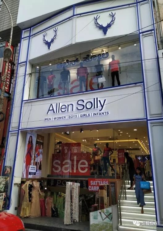 <图6 – AllenSolly,第一眼以为是国内的羊角巷奶茶店。班加罗尔的本土服装品牌,创建于1993年>