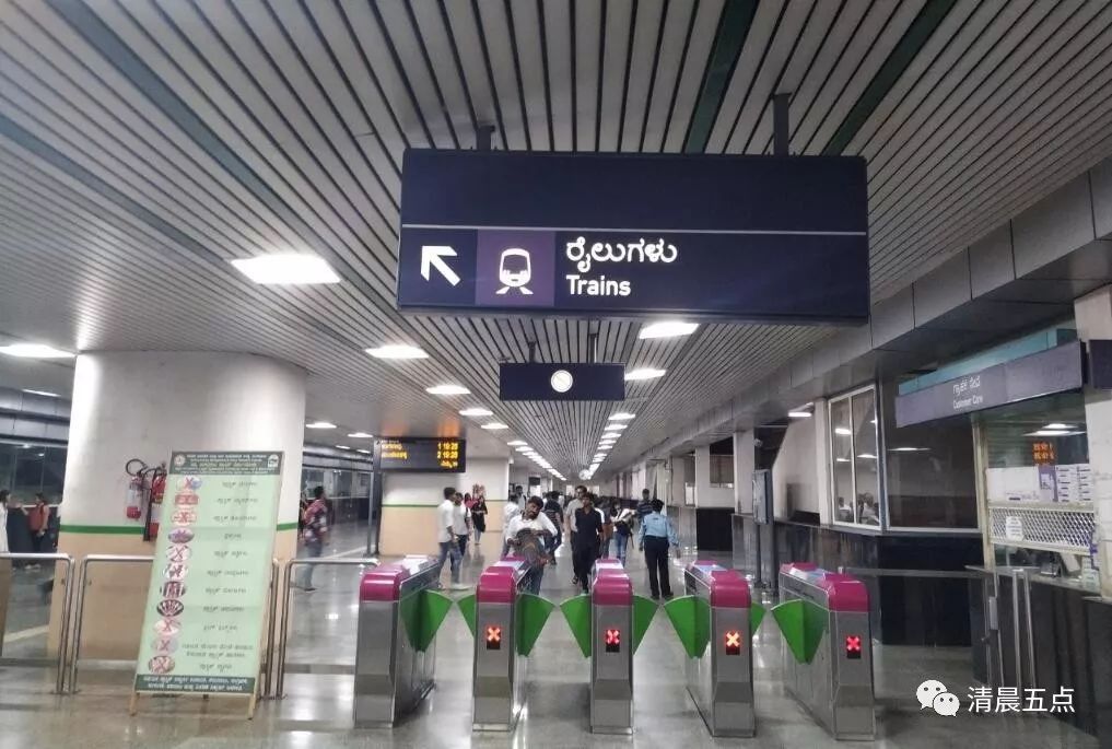 在印度同事热心安排下,我们也体验了一把地铁。班加罗尔有两条地铁路线,呈 X 型。晚高峰期间车厢约七八成满,但是在 X 型中心换乘站,队伍长长,也需要费劲挤上车。地铁非常干净,运行也很平稳。票价最低是15卢比(人民币1元约等于10卢比),最高票价约为60卢比。