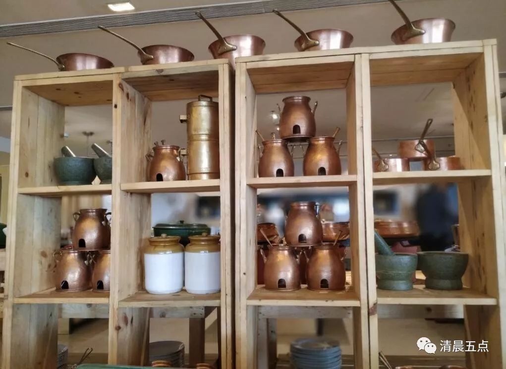 <图16– 餐厅里各种锅碗瓢盆的装饰背景墙>