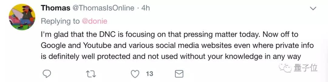 还有网友表示,很高兴DNC今天能集中精力处理这个紧迫的问题,现在去谷歌、Youtube和各类社交媒体,隐私绝对保护得很好,在你不知情的情况下也不会被使用。