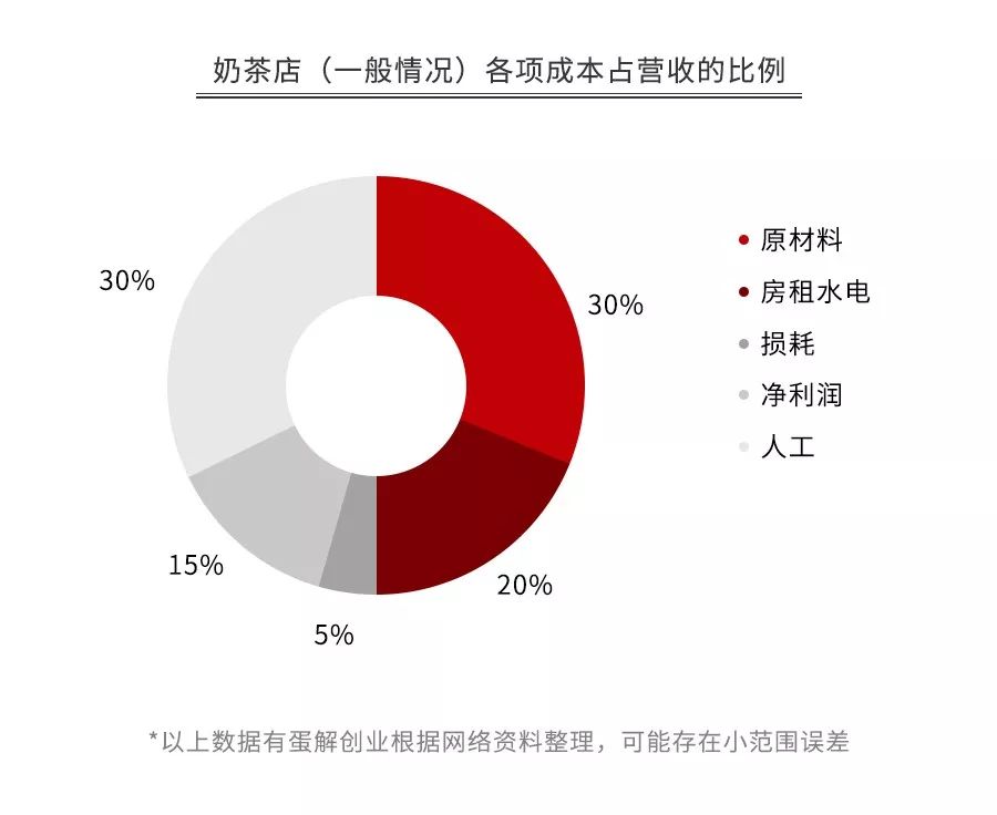 其次,餐饮行业的毛利润还很高,有利可图。一般情况,餐饮毛利润率能达到60%-70%;卖水就更高了,达到70-80%。也就是一杯25元的奶茶,原材料成本不过5元左右。