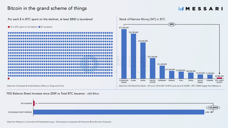 Messari.io发布了一份新的研究报告,以回应美国财政部长Steven Mnuchin将比特币与非法活动联系起来的言论。最新报告对比了法币与比特币对欺诈行为的贡献,结果显示,比特币对非法活动的贡献与最强大的法币(美元)相比相形见绌。暗网交易中每在比特币上花费1美元,相对应的法币洗钱金额高达800美元。(AMBCrypto)