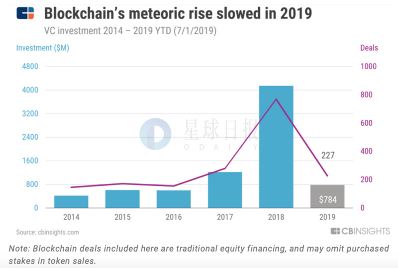 报告:2019年区块链领域获得的VC投资可能下降60%