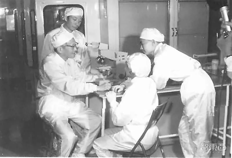 ▲1979年,王守武与研究人员在超净线工作