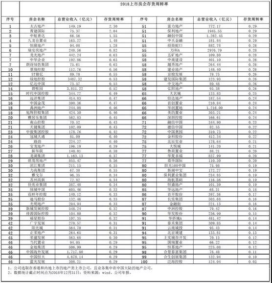 而泛海控股、合生创展集团、合景泰富集团、恒基地产、国瑞置业、上实城市开发、北京城建、云南城投、泰禾集团、华侨城A这10家企业分别以较低的存货周转率排在了100家企业的后10名。