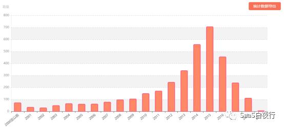 在国内,业内普遍认为2015年是中国SaaS元年。2014~2016年,企业服务市场,特别是SaaS领域的融资达到了一个高点。根据“IT桔子”(itjuzi.com)在2019年7月3日的统计数据:目前国内在运营的3629家SaaS公司中,有近一半(47%)是2014~2016这三年中创立的。