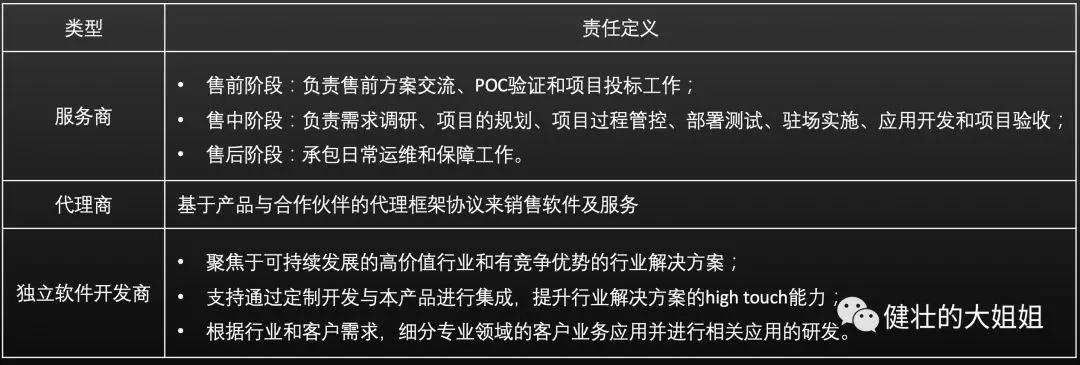 针对合作伙伴的职责,需要根据企业自身的诉求来定义;同样,合作伙伴也可以根据自身的发展诉求来做自我定位。