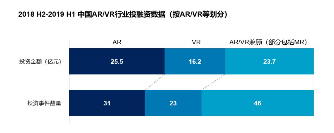 AR/VR投融资数据与前两类数据反映了相似的结果,相比于专注于VR领域的初创企业,投资人也对专注于AR领域的初创企业更加的看好。AR/VR兼顾(部分包括MR)的初创企业获得投资的数量依然占三类最高。