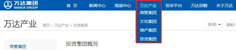独角金融注意到,目前万达集团官网显示,其产业版块由商管集团、文化集团、地产集团和投资集团组成。