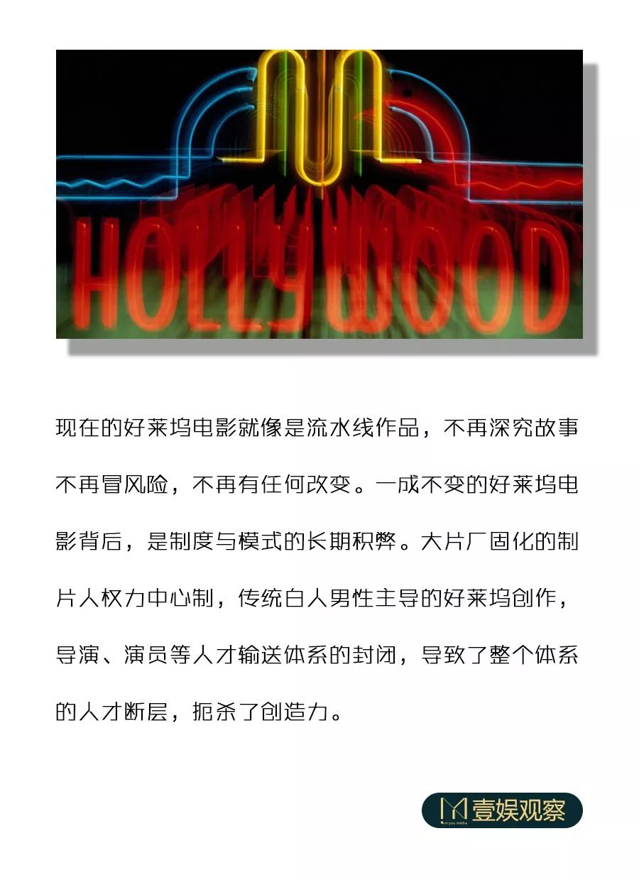 所以不止是少数族裔的问题,更多的富有创造力导演都因不遵循如此故事套路与拍摄模式被拒之门外,导致了人才的大断层。