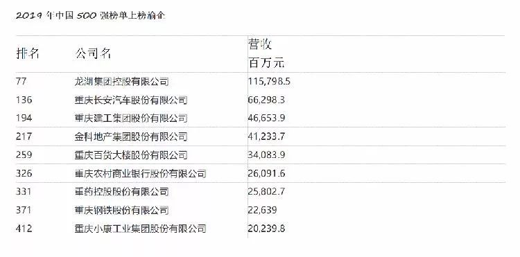 重庆则有9家入围财富中国500强,名单如下: