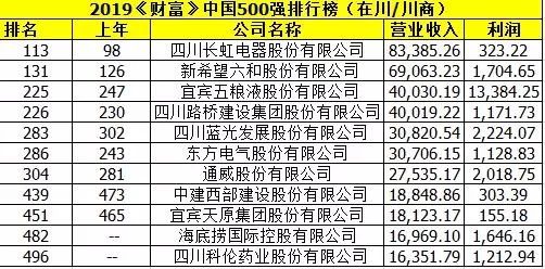 前不久发布的“2019年财富中国500强”显示,有10家公司总部在川企业及1家川商企业上榜,名单如下: