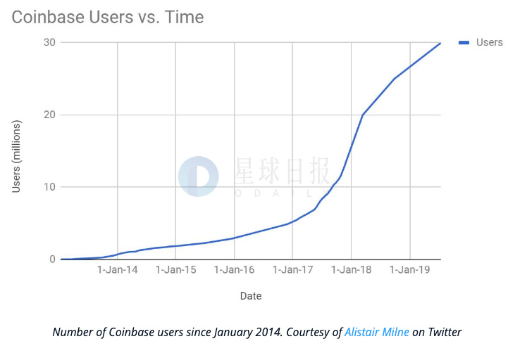 BTC投资者和企业家Alistair Milne表示,在过去12个月中,Coinbase已经注册800万新用户。根据Coinbase网站的数据,目前该加密交易所的用户数量已超过3000万,加密货币交易额超过1500亿美元。(Cointelegraph)