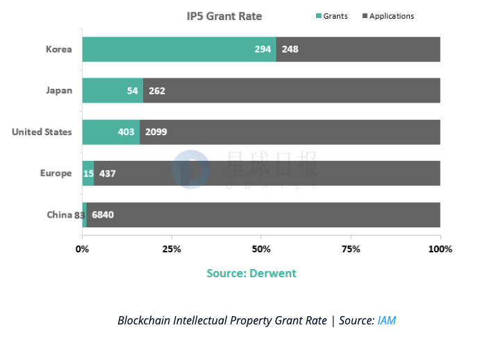 据IAM报道,伦敦律师事务所Withers & Rogers的数据显示,韩国区块链专利授予率为54%,位居首位;其次是日本(17%)和美国(16%),而中国明显落后。数据还显示,中国和美国分别占区块链创新的62%和22%,共同负责该行业的绝大部分发展(82%)。(Cointelegraph)