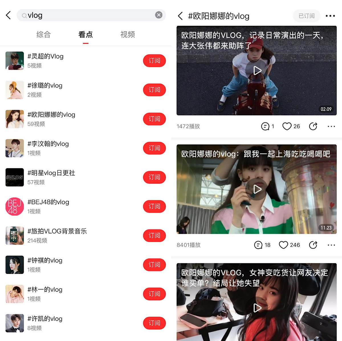 “这确实是我们内容领域很重要的一个品类,但会根据我们的用户群体邀请合适的CP一起创作,”杨达志告诉36氪。目前,已经有几百位明星vlogger入驻平台,比如同时入驻西瓜视频的欧阳娜娜,以及沈月、周冬雨等。