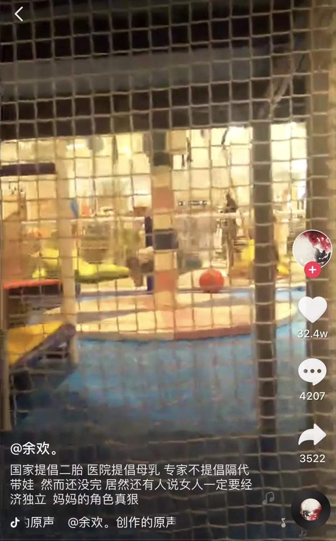 抖音用户余欢粉丝2622,视频平均点赞数都没达到10。但2019年6月她上传的一段带孩子视频却爆火,赞数高达32.4万。