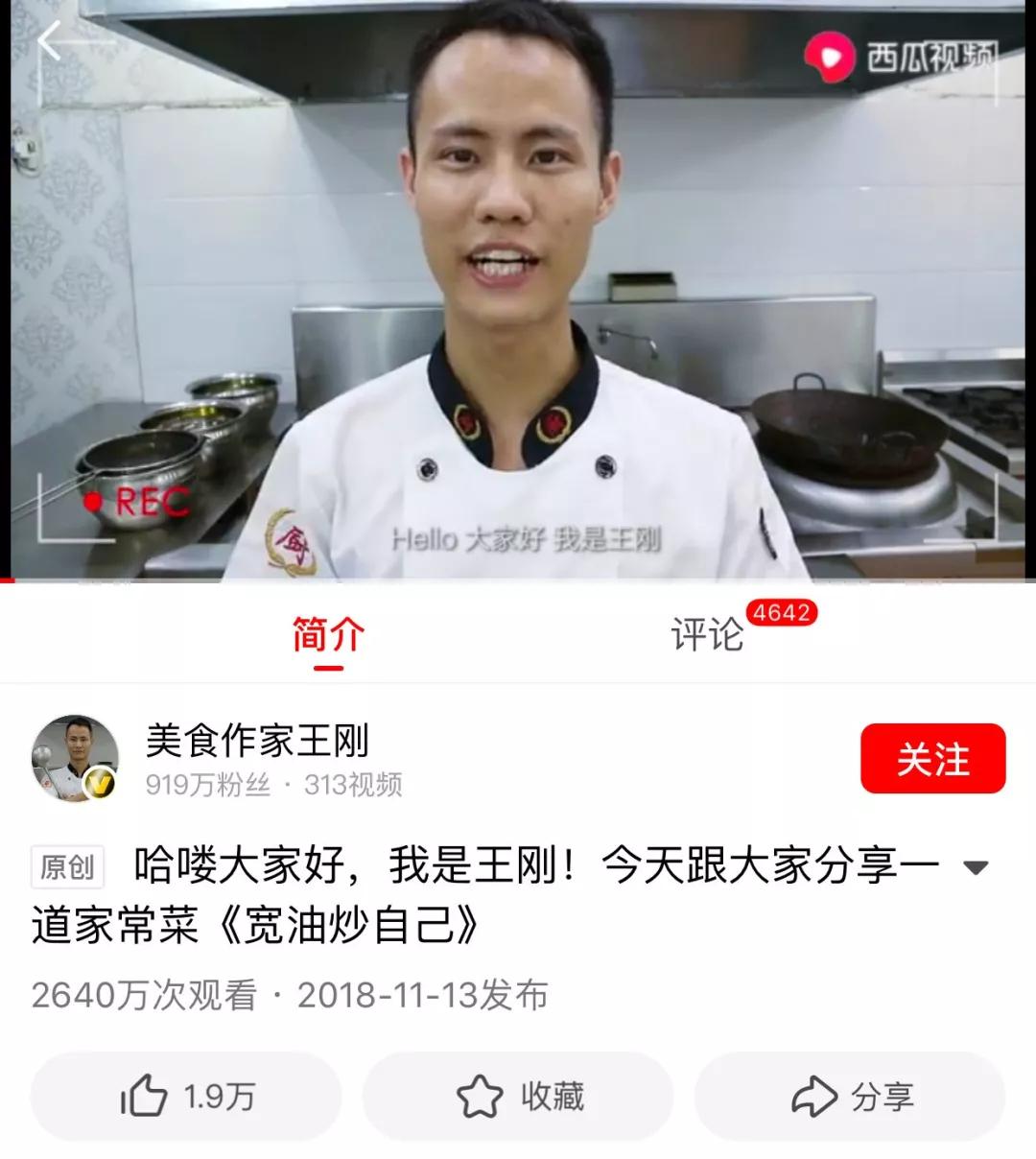 在西瓜视频上,他最火的一条视频《宽油炒自己》播放量达到了2640万。