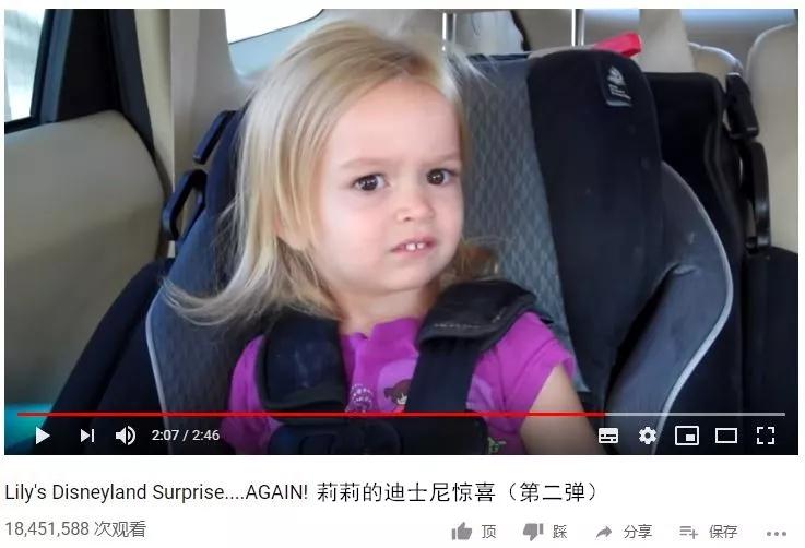 姐姐莉莉捂脸嚎啕大哭,妹妹克洛伊坐在一旁迷惑不解。这是另一个在YouTube上播放破千万的视频——《莉莉的迪士尼惊喜(第二弹)》。