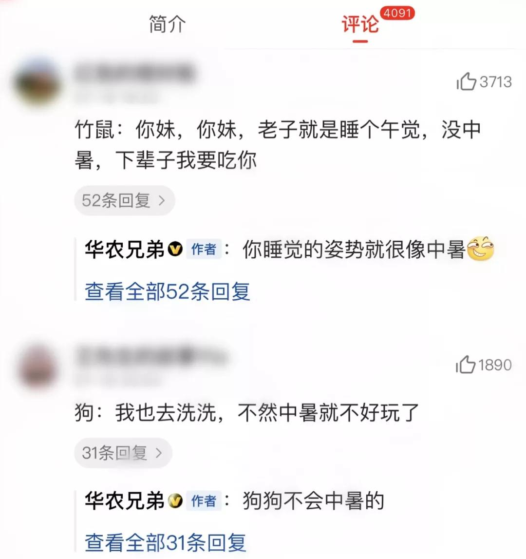 模仿竹鼠与华农兄弟对话的高赞评论屡见不鲜,华农兄弟本人的亲自回复显然带动了热度的进一步提高。