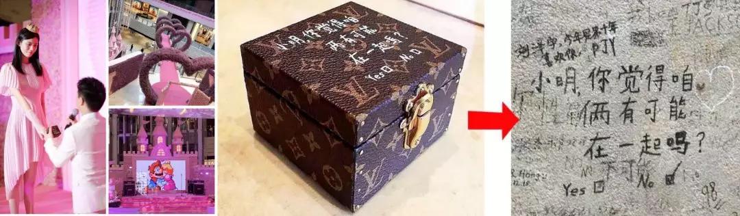 从粉色玫瑰到马里奥求婚碧姬公主梗,从求婚戒指硕大的LV老花LOGO,到求婚游戏环节智障障碍设置。以上一切无不透漏着“土和豪”。