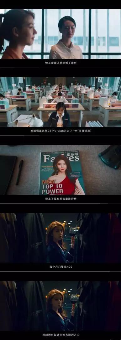 新人王薇薇因为衣着得体,面试时pk掉职场竞争对手,工作时pk掉其他项目经理,慢慢“杀死”直系上司赢在职场,更艳遇高富帅投资人实现爱情和事业双丰收,并登上财经杂志封面,走上“人生巅峰”。最后揭秘她只是凭借app共享的大牌衣饰才得以开挂。
