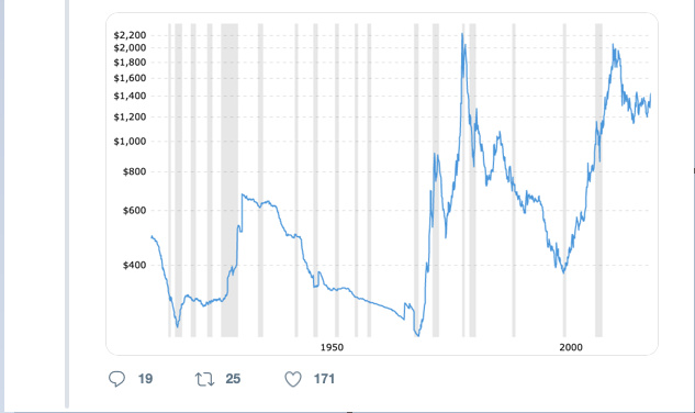 不过,也有一些分析师担心“HODL”比特币的人太多会导致流动性缺乏,引发波动性下降,继而让比特币的价格行为与黄金等大宗商品相似,失去了加密货币去中心化的本质。Adaptive Capital 合伙人兼加密分析师 Willy Woo 发布了一份上世纪的黄金价格走势图,并提出了一个问题:为什么过去 100 年的黄金交易走势和过去 100 周的“垃圾币”走势如此相似?