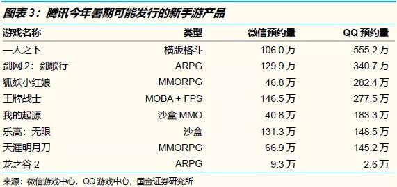 结合产品预约和内测情况看,我们认为,在今年7-8月,《一人之下》《狐妖小红娘》《王牌战士》等重量级手游均可达到上线条件;具体何时上线,则要看腾讯的整体规划。到了年底,万众瞩目的《地下城与勇士》手游也可能上线。总而言之,腾讯的手游产品线可以至少保证到年底之前的“统治力”。