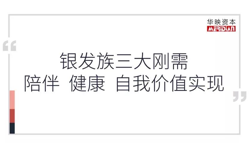 其中,华映资本重点关注50-70岁、即将退休或刚退休的初老银发族。当前60后开始陆续从忙碌的工作生活中解放,随之产生强烈的孤独感,适应性退化;同时他们享受到改革开放的红利,拥有较高的触网频率,财富和时间双自由的状况下,消费和娱乐的意愿空前强烈,针对银发族的大把服务也应运而生。以活力老人为代表的慢消费,规模逐渐形成,会造就未来一个新消费细分。