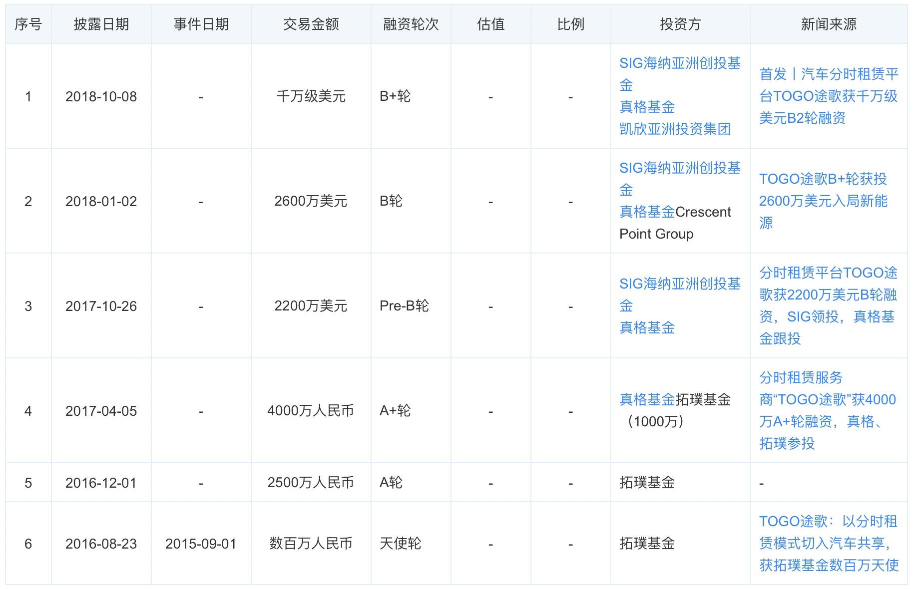 时间回到2015年,途歌出行成立,入局汽车分时租赁市场。4年内完成了6轮融资,彼时诸多业内人士认为途歌出行离上市只有一步之遥。