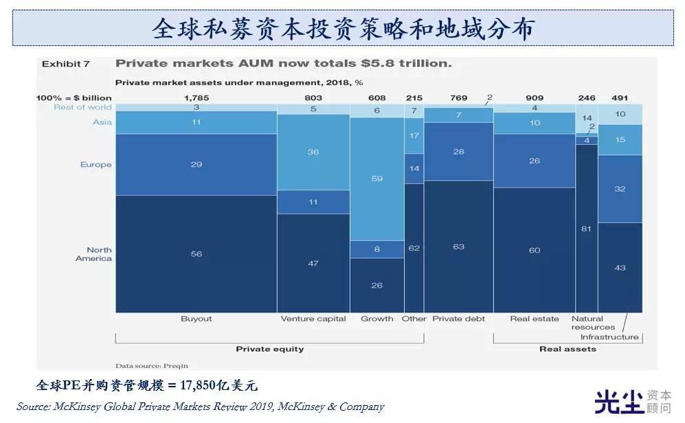 例如根据麦肯锡2019年统计,全球股权投资市场2018年的AUM约为3.4万亿美元,而以Buyout为主要策略的并购基金,就达到了近二分之一,1.8万亿美元【9】。而境内市场Buyout的比例则非常低,其中一个原因就是Buyout策略依赖大量成熟三方机构,如战略咨询和企业运营顾问的介入,而境内则完全不具备这样的环境。