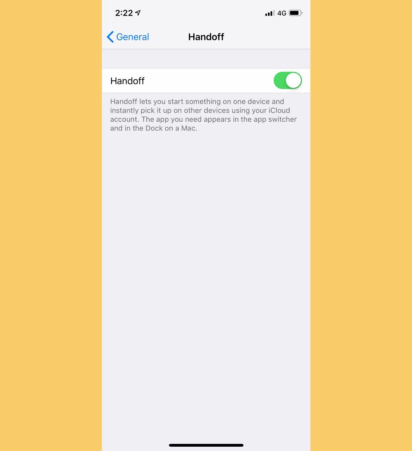 点击设置>通用>接力,在iPhone上开启Handoff。